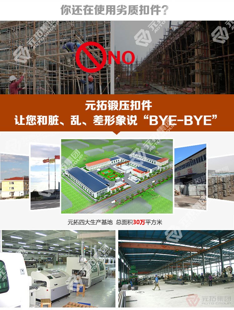 國內(nèi)做建筑鍍鋅扣件的廠家很多,元拓集團算是做好的廠家之一,元拓建筑扣件種類繁多,規(guī)格齊全,大部門市場上用的扣件類型元拓都有生產(chǎn)銷售,因原材料大批量采購,總體價格還是畢竟好的,買元拓腳手架扣件是很高的性價比選擇。