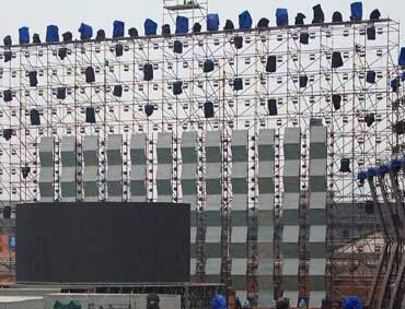雷亞架主要用于大型演唱會(huì)的燈光架、背景架。這種雷亞架基本原理,采用鑄鋼或沖壓輪盤焊接在立柱上,橫桿通過(guò)橫桿頭與立柱上的輪盤進(jìn)行聯(lián)接,通過(guò)銷片進(jìn)行固定。