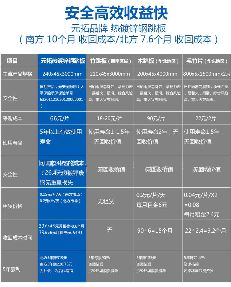 2、元拓鋼踏板用于租賃,約7-9個月即可收回成本,在有效使用壽命期內(nèi)的其他出租組建為純收益。
